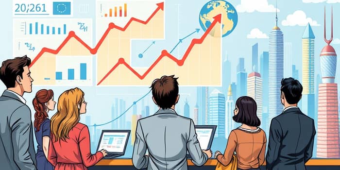 As estimativas mais recentes apontam para um crescimento global moderado e resiliente em 2026. Organizações como Mastercard e o FMI projetam um PIB entre 2,6% e 3,1%, impulsionado por investimentos em tecnologia e estímulos fiscais.